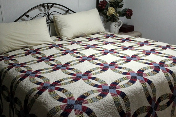 Hand quilted double wedding rings, log cabins and wholecloth quilts for sale online. Wish your inbox was more stylish? Vintage double wedding ring quilt blue and yellow vintage | etsy.