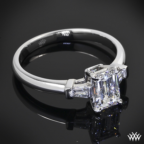Emerald Three Stone Engagement Ring And Wedding Band