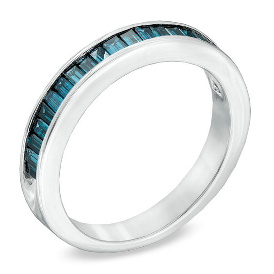 Enhanced Blue Diamond Wedding Band. Ladies white gold finish blue diamond princess fashion wedding band ring.5ct. The beveled edges are a thoughtful finish to this comfort fit band.