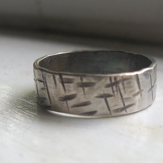 Men's unique silver rustic wedding band - custom handmade ... from i.pinimg.com